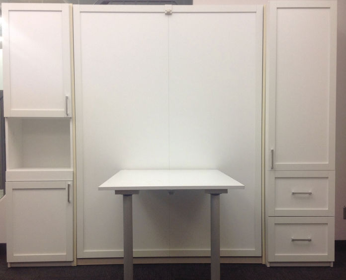 For those who do not want a transform a spare room into a full home office setup, you can add a side desk that matches the material of your wall bed. You can also add side cabinets and shelving to your Murphy Bed with Side Desk setup.
