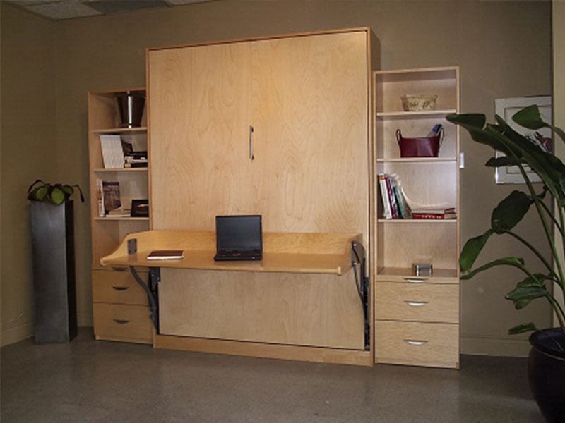 Murphy Bed with Self-Levelling Desk in Contemporary Maple and Side Cabinets